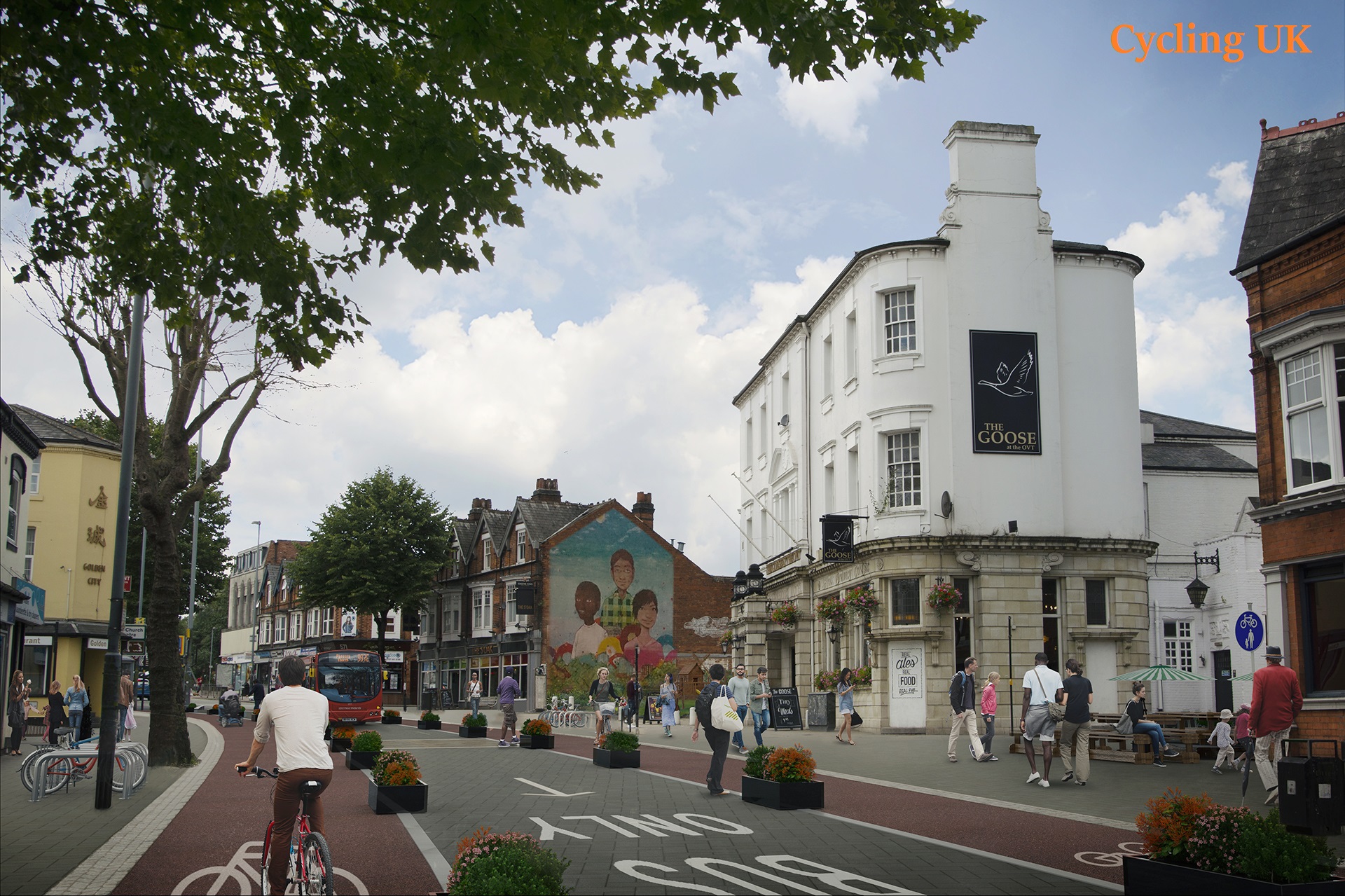 - Take the wands right up to the crossroads by Aldi, and let cyclists cross in both directions on the Dale Road pedestrian phase (it would be sensible to provide repeater lights for cyclists).