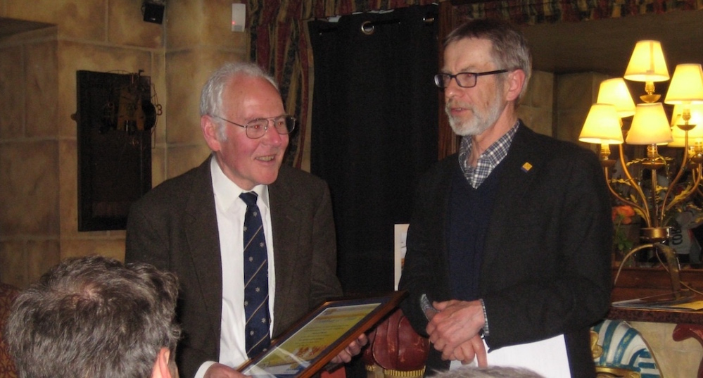 Howard Boyd receiving the CTC's certificate of merit in 2013 for outstanding contributions to cycling.