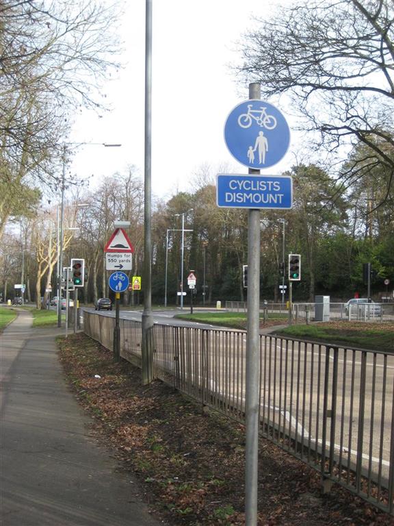 Why do the British have so much difficulty with designing good cycling infrastructure? Here on the A38 in Bournville cyclists are allowed to shared a narrow, bumpy path with pedestrians. Or maybe not. These signs cost money, but all they do is create confusion. Of course the safe option for someone determined to stay within the law is to not ride a bike here. No bikes here please, we're British.